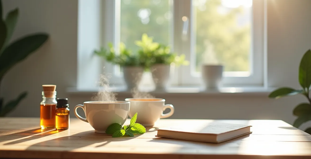 Sobald Sie die Symptome identifiziert haben, können Sie gezielt naturheilkundliche Methoden anwenden. Statt einer Pille für alles gibt es spezifische, sanfte Interventionen für jede einzelne Beschwerde. Konzentrieren wir uns zunächst auf die mentalen und nervlichen Herausforderungen: Kopfschmerz, Reizbarkeit und Konzentrationsstörungen.